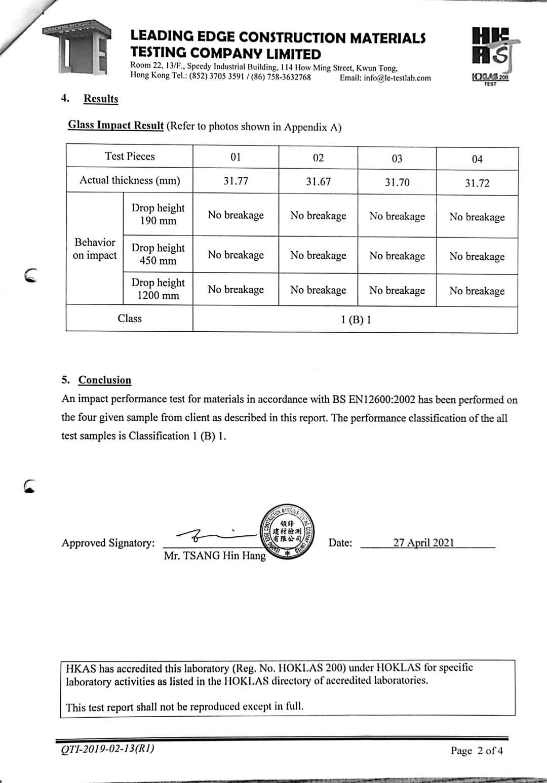 15+2.28+15夾層撞擊測試報告