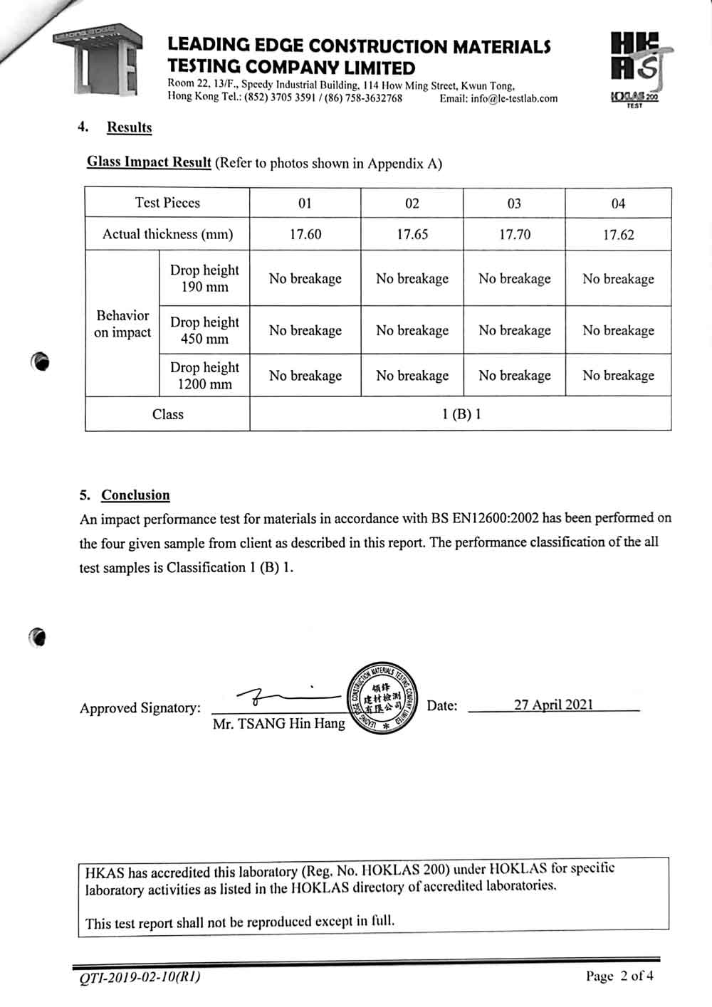 8+1.52+8夾層撞擊測試報告