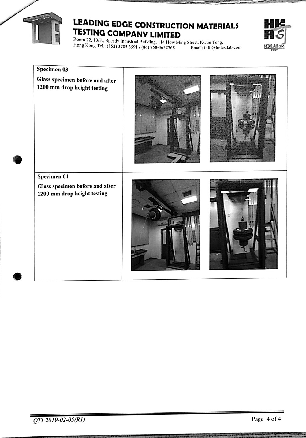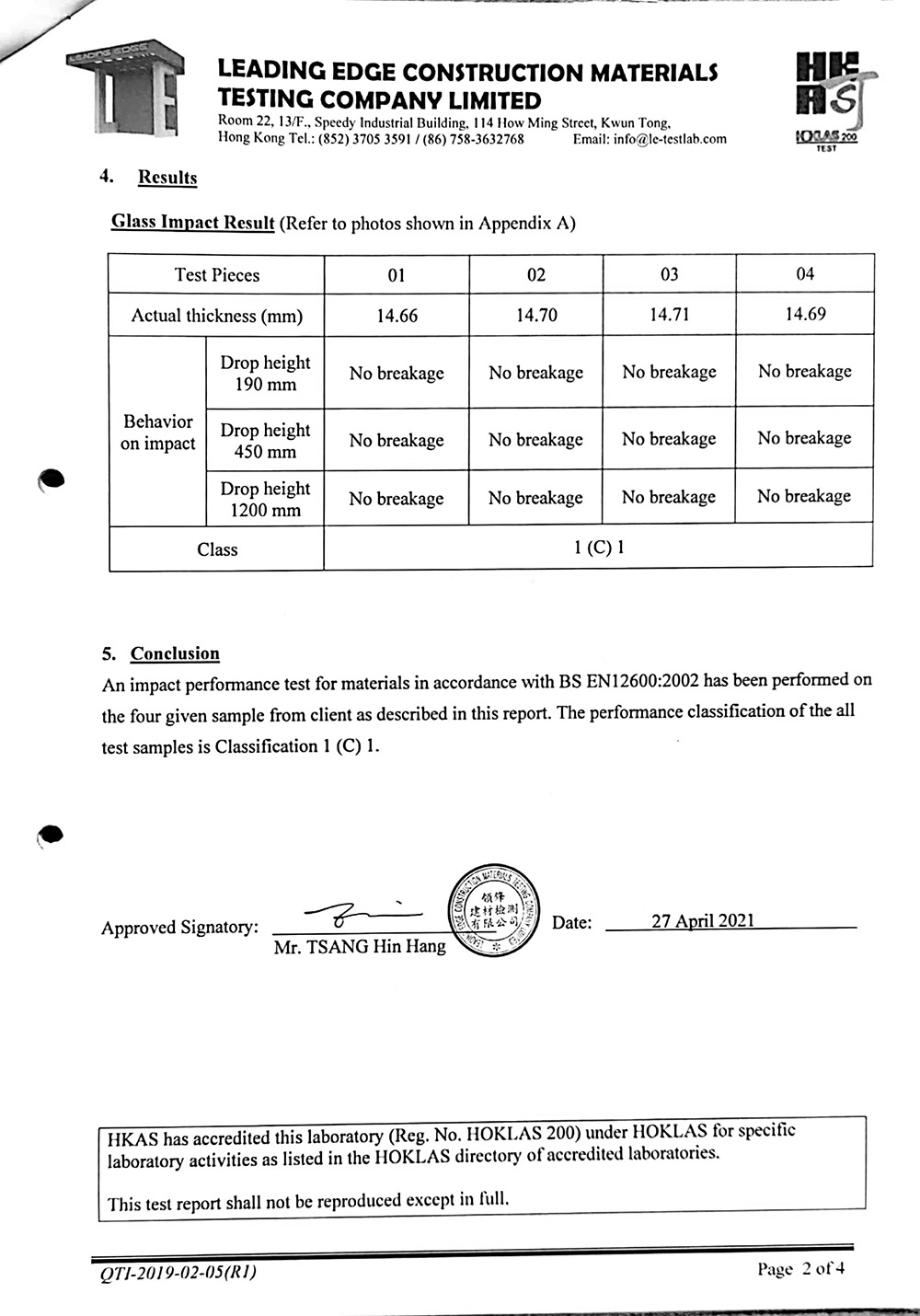 15mm白玻鋼化撞擊測試報告