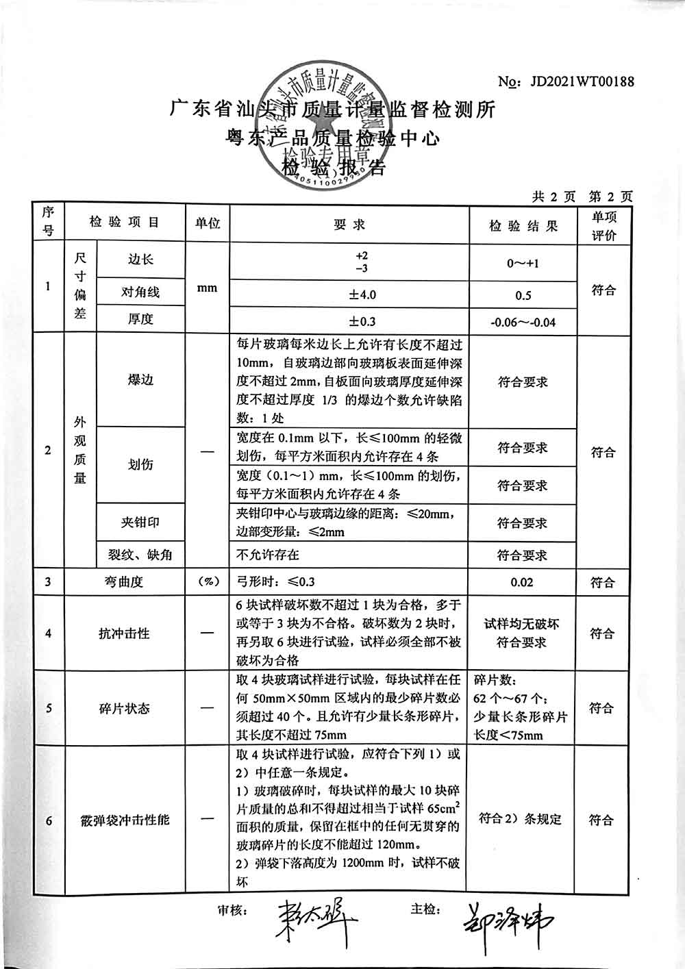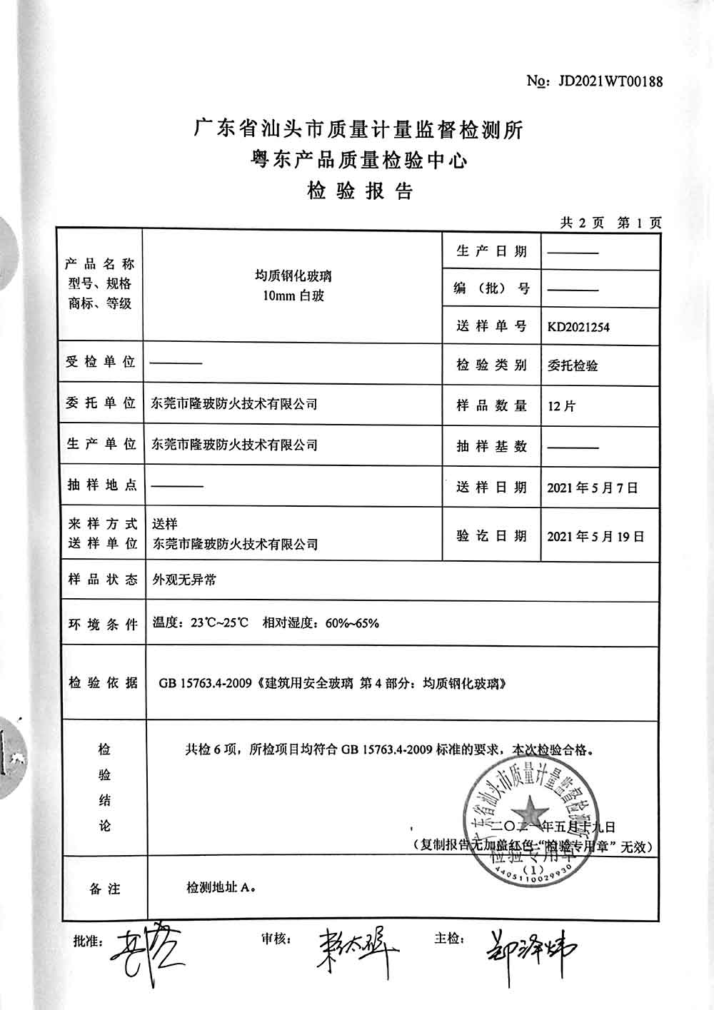 均質鋼化玻璃10mm白玻檢測報告
